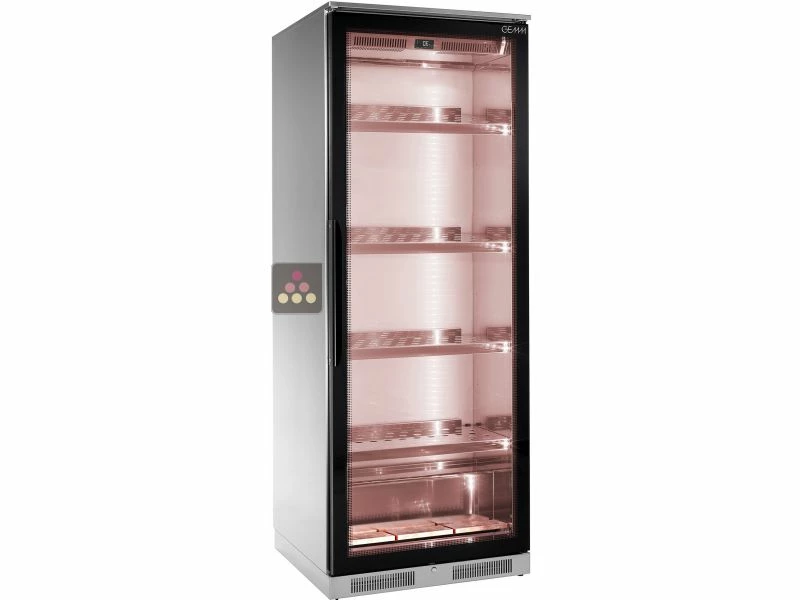 L’habillage extĂ©rieur en inox poli satiné et la porte vitrĂ©e Full Glass à  encadrement noir s’intĂ©greront facilement dans un restaurant ou tout autre commerce de bouche.