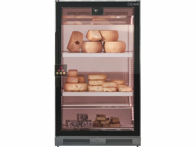 Vitrine réfrigérée de présentation et de conservation des fromages, mono-température réglable de 4 à 16°C, d’une capacité utile d’environ 200L.