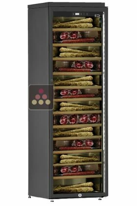 Grâce à sa technologie de froid spécifique, cette cave est conçue pour conserver tout type de charcuteries séchées ou fumées (jambons, saucisses sèches, coppa), grâce à une température et une hygrométrie optimale.