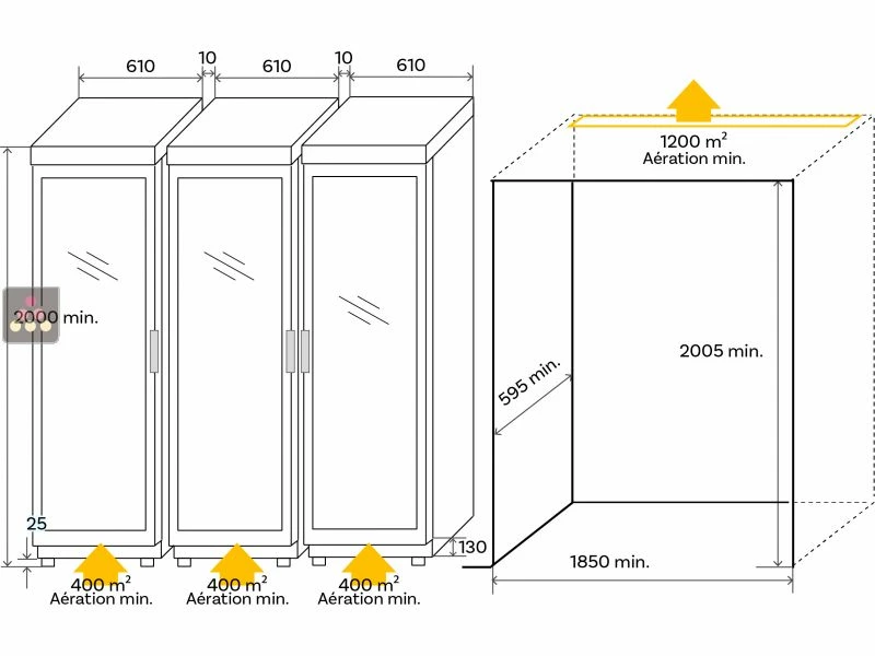 Cette cave peut être installée dans une pièce dont la température sera comprise entre 10 et 32°C.