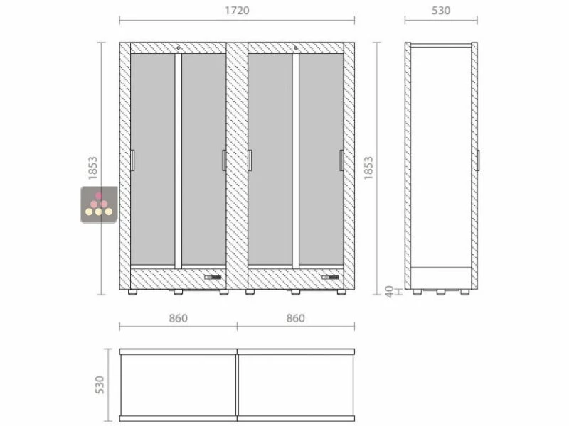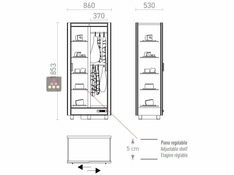 Important : ces vitrines ne sont pas des réfrigérateurs ou des armoires positives : elles sont uniquement destinées à la présentation en salle ou en boutique de produits secs ou affinés (aucune denrée sensible type viande fraiche, charcuterie cuite, poisson, etc).