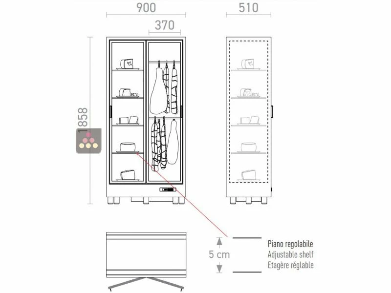 Important : cette vitrine n’est pas un réfrigérateur ou une armoire positive : elle est uniquement destinée à la présentation en salle ou en boutique de produits secs ou affinés (aucune denrée sensible type viande fraiche, charcuterie cuite, poisson, etc).