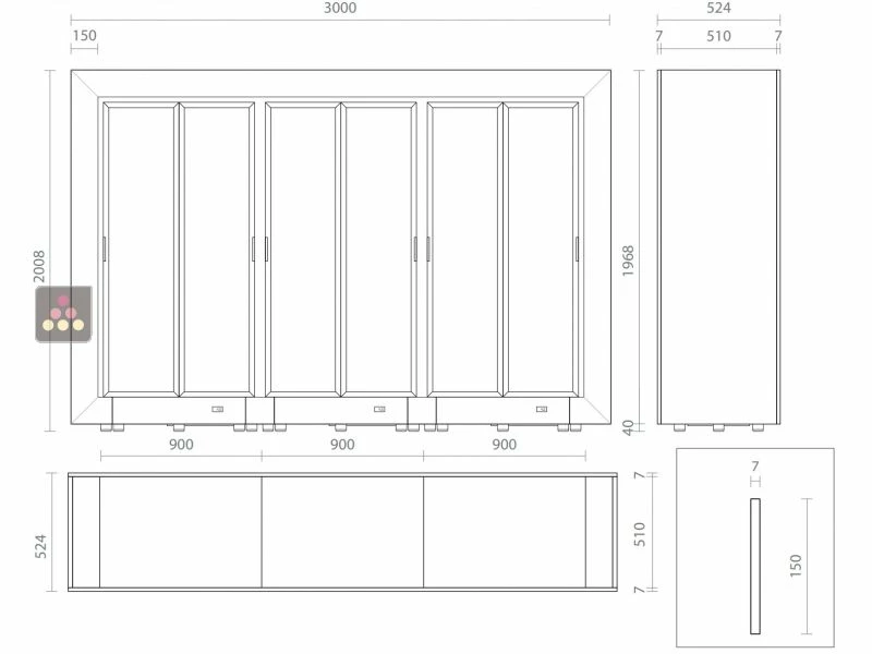 Exposition des bouteilles : ce combinĂ© peut accueillir jusquâĂ 120 bouteilles, couchĂ©es sur des tubes en aluminium, dans le sens de la largeur, ce qui laisse apparaĂźtre lâĂ©tiquette des bouteilles placĂ©es Ă lâavant et Ă l’arriĂšre. Au total, 60 bouteilles sont exposĂ©es avec lâĂ©tiquette visible. Le diamĂštre maximum des bouteilles est de 90mm, ce qui permet dâaccueillir la plupart des formats 75cl standard (Bordeaux, Bourgogne, Champagne)