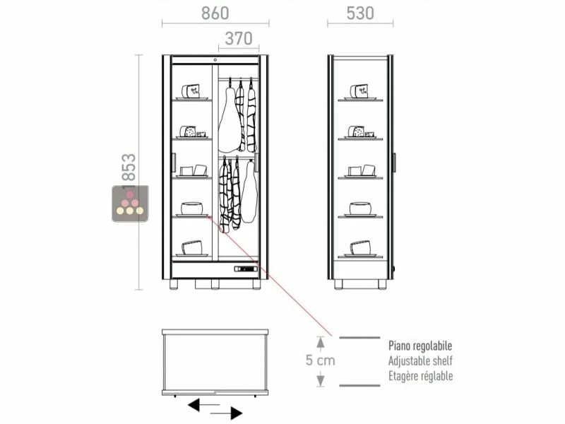 Important : cette vitrine n’est pas un réfrigérateur ou une armoire positive : elle est uniquement destinée à la présentation en salle ou en boutique de produits secs ou affinés (aucune denrée sensible type viande fraiche, charcuterie cuite, poisson, etc).