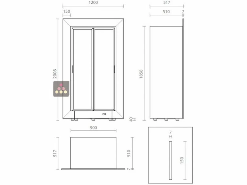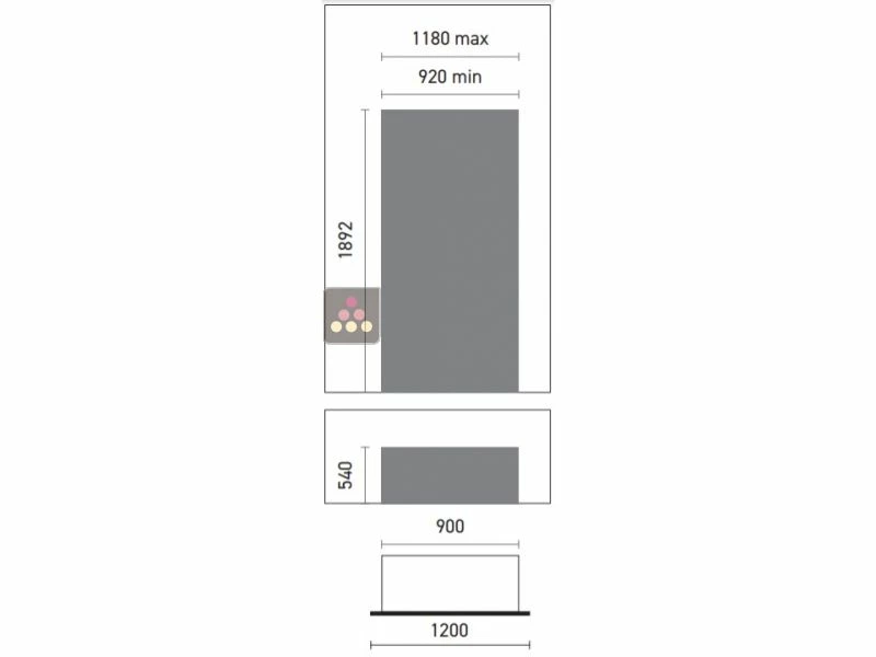 Installation encastrée : cette vitrine est destinée à être posée au sol dans une niche. Elle peut également être posée sur un socle pour la surélever, à condition que celui-ci supporte le poids de la vitrine chargée. Important : l’espace de 4cm de hauteur situé au niveau des pieds doit rester entièrement libre pour permettre la ventilation du groupe froid.