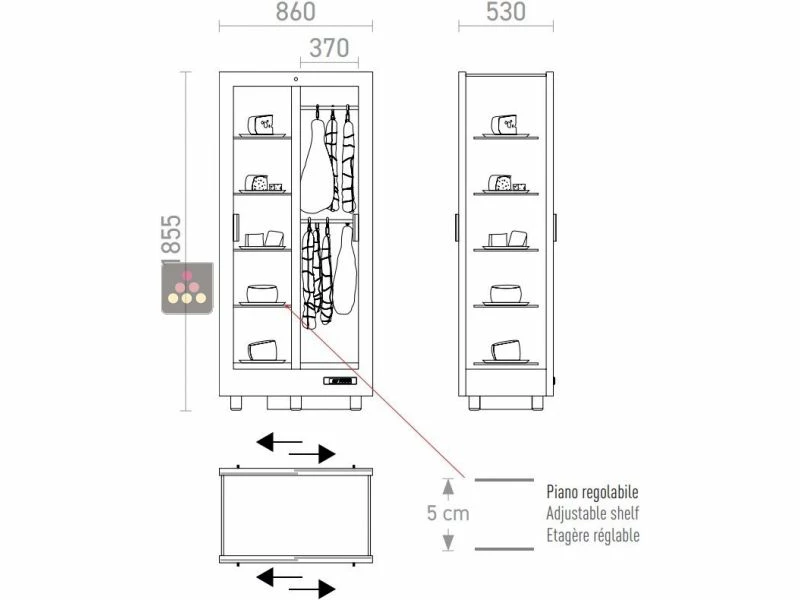 Important : cette vitrine n’est pas un réfrigérateur ou une armoire positive : elle est uniquement destinée à la présentation en salle ou en boutique de produits secs ou affinés (aucune denrée sensible type viande fraiche, charcuterie cuite, poisson, etc).