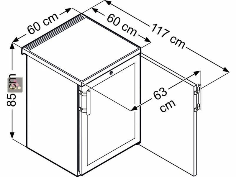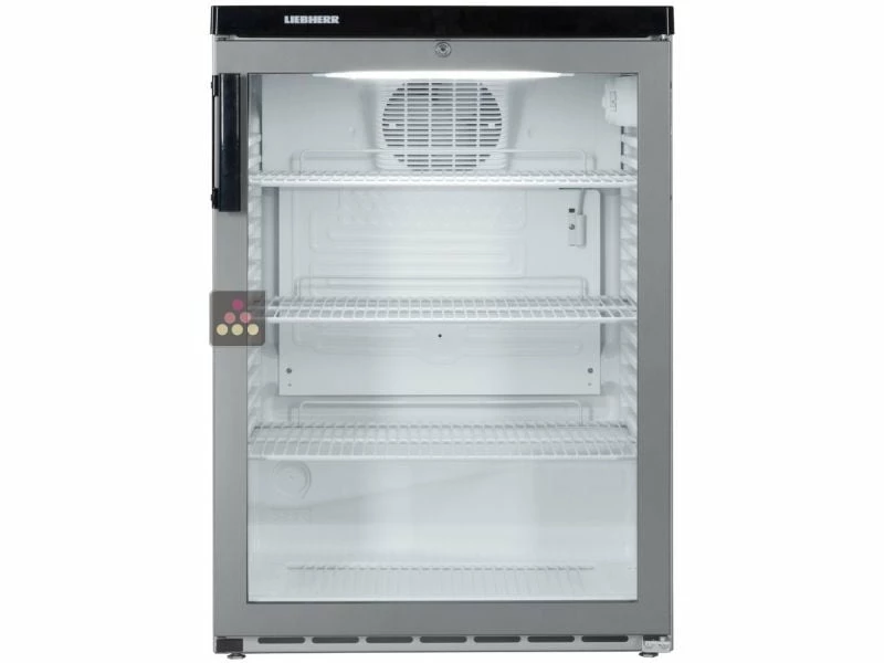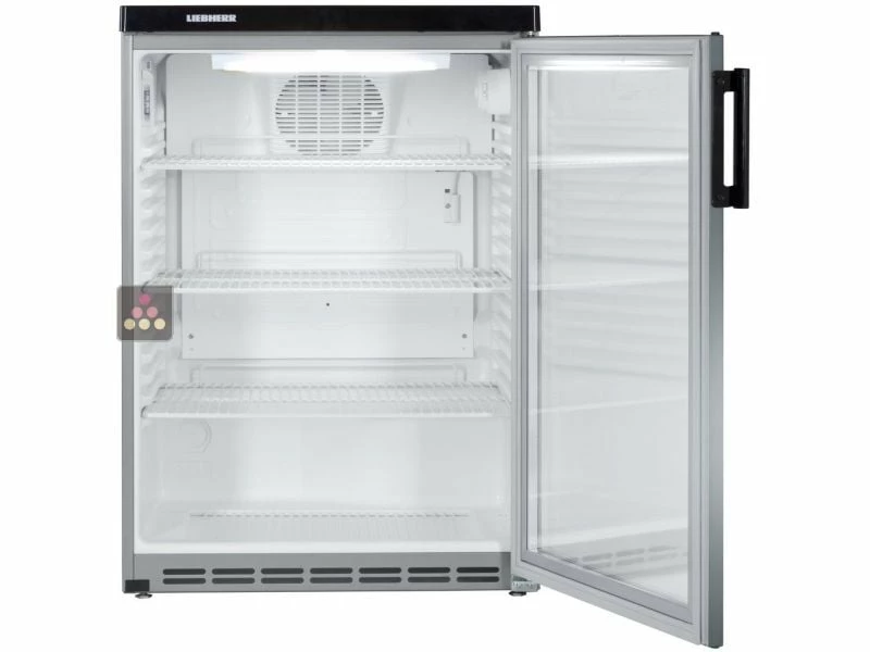 L’élégante porte en verre (double vitrage thermopan) expose le contenu de manière attractive. La visibilité des produits est accentuée grâce à un éclairage LED commandé par interrupteur. La porte est réversible avec joint magnétique clipsable facilement remplaçable, et est équipée d’une serrure. La carrosserie est en acier epoxy couleur inox.